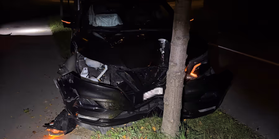 Der Lenker blieb unverletzt. Am Fahrzeug entstand grosser Sachschaden. Zudem wurden der Kandelaber und der Baum in Mitleidenschaft gezogen.