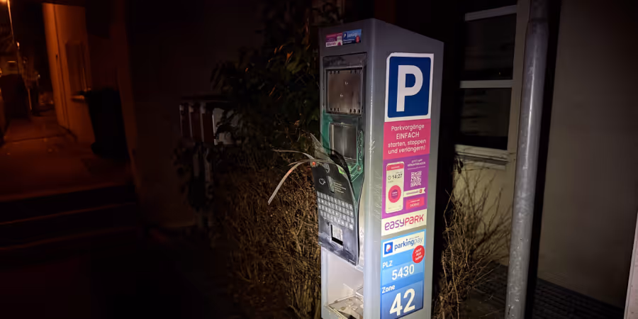 Am Montagabend war in Wettingen AG kurz nach 20 Uhr ein lauter Knall zu hören. Wie die Polizei wenig später feststellte, hatten Unbekannte die Parkuhr eines Parkplatzes an der Mattenstrasse mit einem Böller beschädigt.