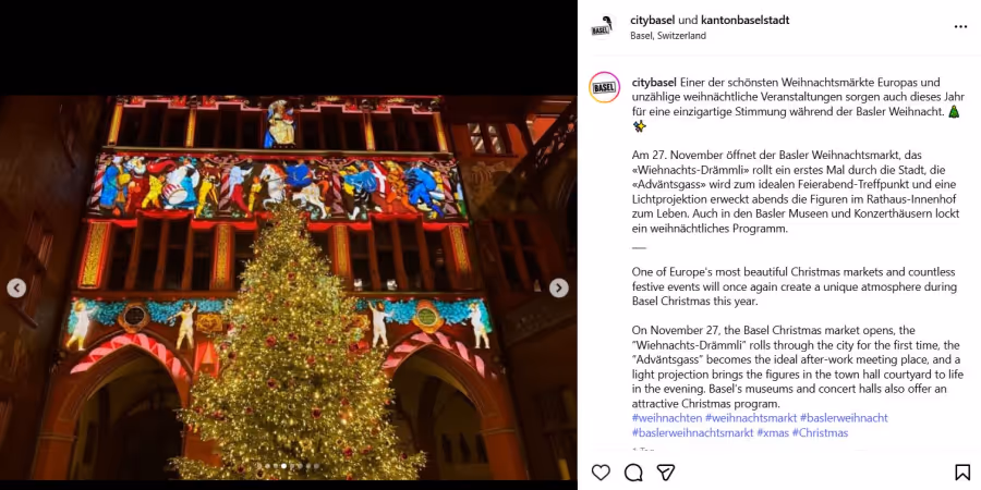 Die Fassade im Innenhof des Basler Rathauses wird in der Adventszeit erneut zum Leben erweckt.