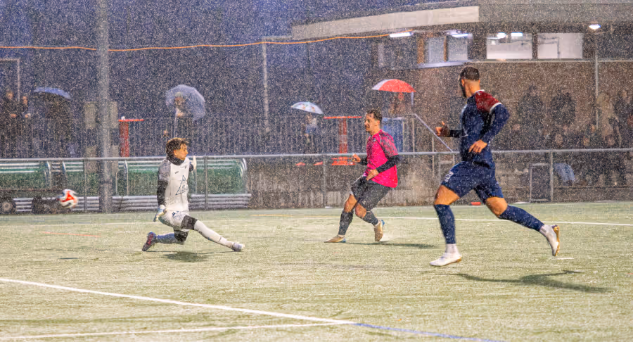 Der FC Wyler und der FC Frutigen haben sich im Wyler-Park in Bern trotz Schneetreiben ein spektakuläres 3:3 in der 2. Liga regional geliefert.