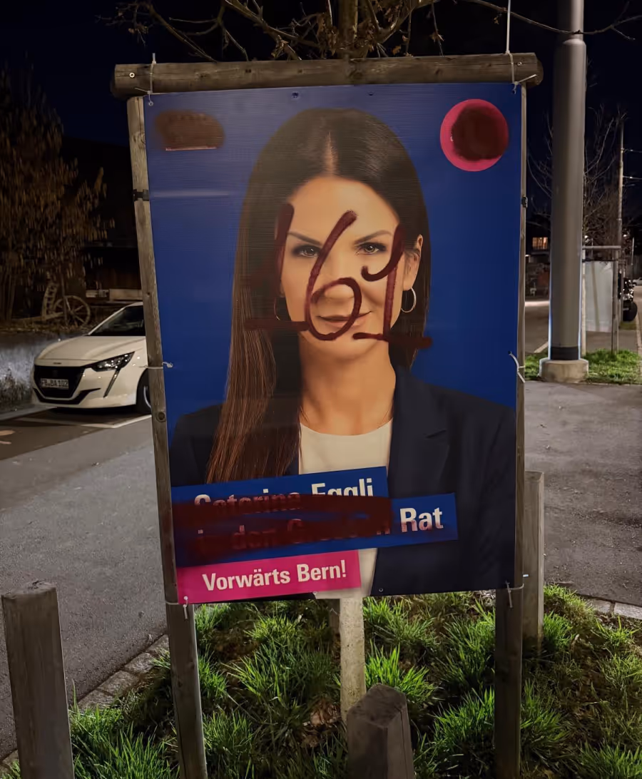 Beschädigte Wahlplakate sind nichts Neues. Besonders betroffen sind die Plakate von FDP-Grossratskandidatin Caterina Eggli. Der BärnerBär hat nachgefragt.