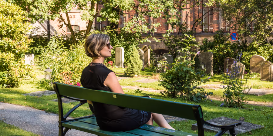 Die Umgebung wird mit einer sorgfältig abgestimmten Staudenmischung bepflanzt, die je nach Jahreszeit unterschiedliche Farbakzente setzt und eine idyllische, friedvolle Stimmung schafft. Malerische Felsenbirnen rahmen das Grabfeld und schaffen eine würdige Kulisse.