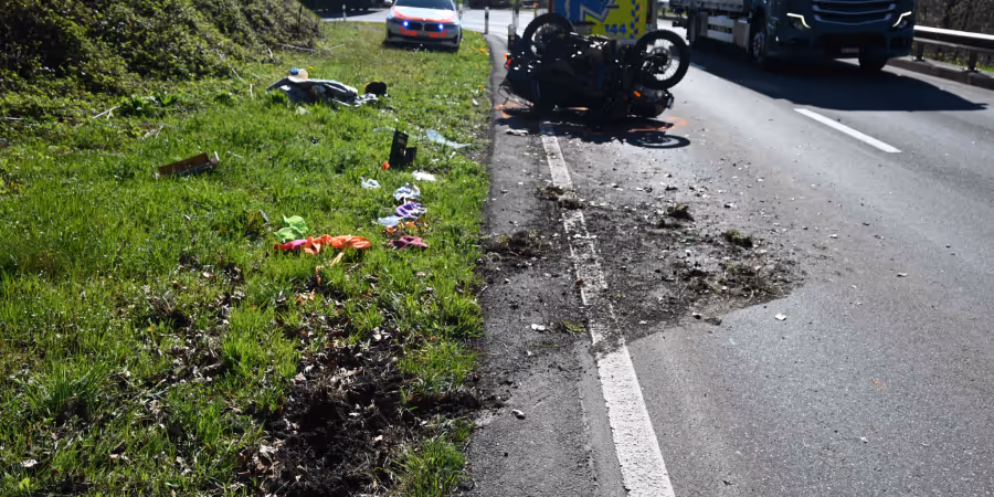 Dort hob das Motorrad ab und kam einige Meter weiter vorne auf der Strasse wieder zum Stillstand. Durch den Aufprall wurde der Mann vom Motorrad auf die Strasse geschleudert.