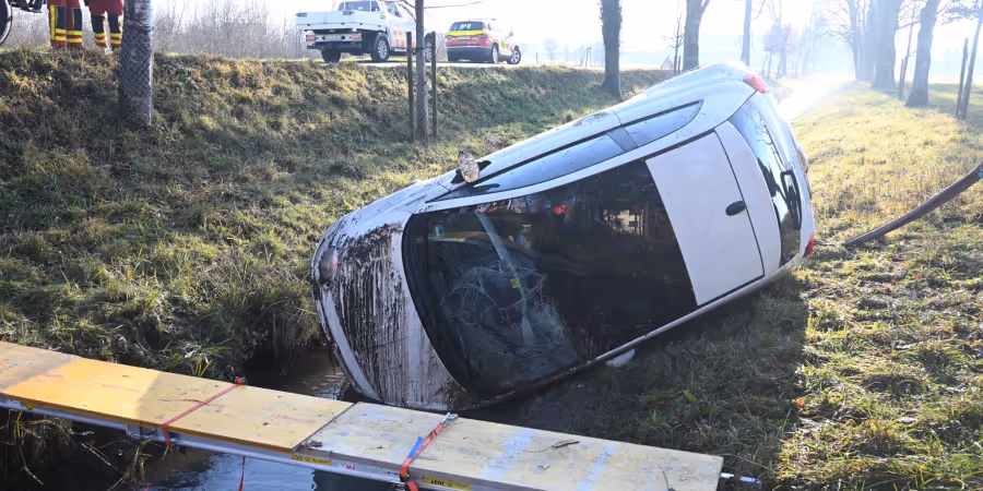 Die ausgerückte Patrouille traf ein auf der linken Seite liegendes Auto an. Die 61-jährige Fahrerin befand sich noch im Auto, konnte es wegen der Seitenlage aber nicht selbständig verlassen.