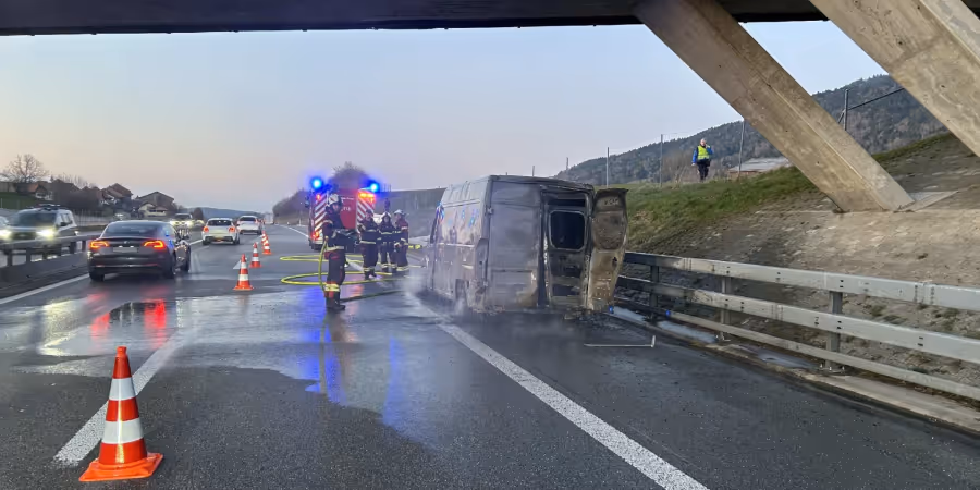 Am frühen Donnerstagabend rückten Feuerwehr und Kantonspolizei zu einem brennenden Fahrzeug auf der Autobahn bei Châtel-St-Denis FR aus.