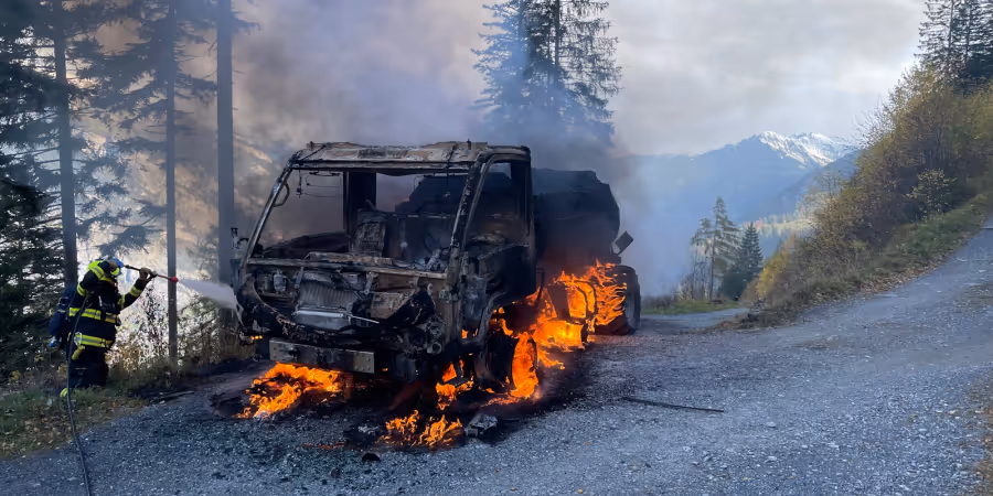 Am Samstagvormittag ist in Domat/Ems ein landwirtschaftliches Fahrzeug vollständig ausgebrannt. Verletzt wurde niemand.