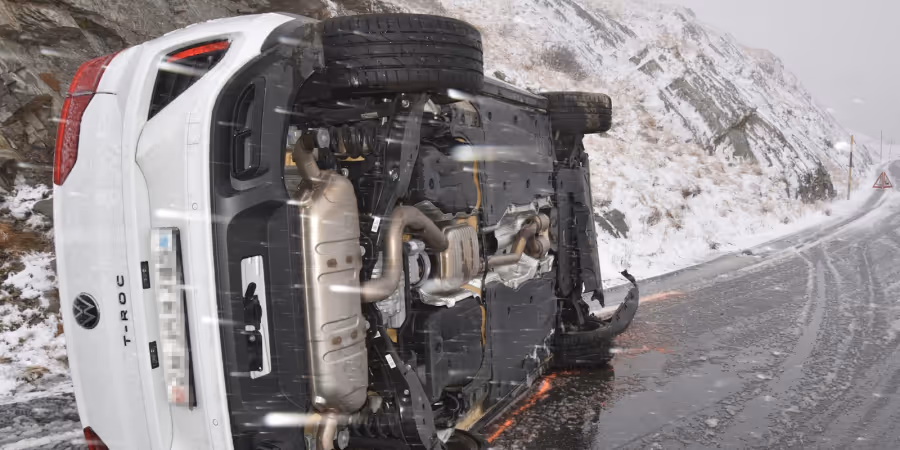 Am Montag ist es auf der schneebedeckten Splügenpass-Strasse in Splügen GR zu einem Schleuderunfall gekommen. Ein Auto kippte dabei auf die Seite.