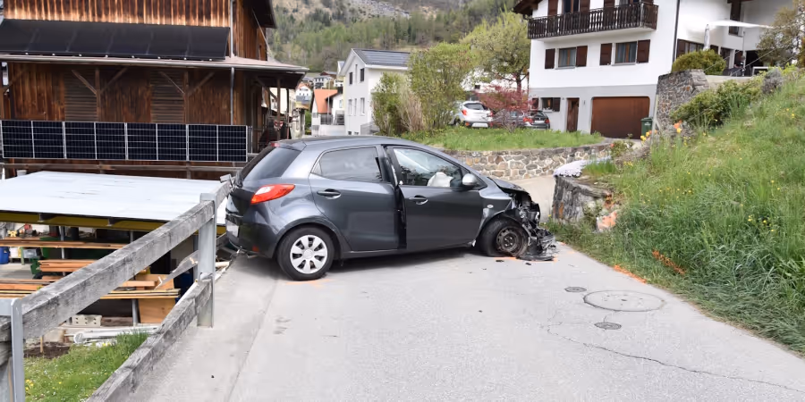 Durch die Kollision wurde das Auto nach links abgedreht und kollidierte mit dem Heck im gegenüberliegenden Bündnerzaun.