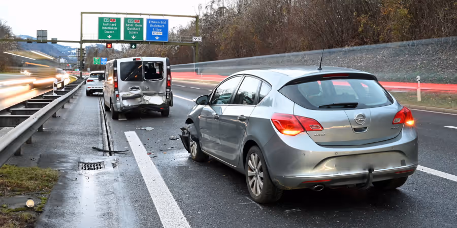 Am Donnerstag, kurz nach 6.45 Uhr, kam es auf der Autobahn A14 in Ebikon, Fahrtrichtung Luzern, zu einer Auffahrkollision mit drei beteiligten Fahrzeugen.