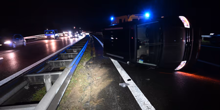 Das Auto des 63-Jährigen kippte durch den Aufprall auf die rechte Fahrzeugseite, prallte in die Mittelleitplanke und kam in der Folge ebenfalls quer auf der Fahrbahn zum Stillstand.