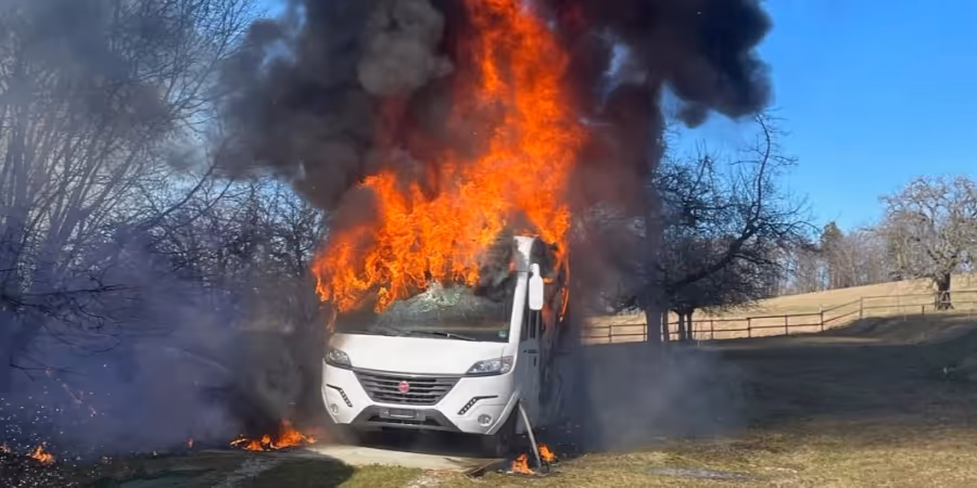 Aus noch unbekannten Gründen brannte am Sonntagmittag, 27. Februar 2022, im Weiler Sassenloh in Hörhausen TG ein Wohnmobil. Es wurde niemand verletzt.