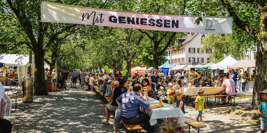 Verschiedene Bereiche wie der Gauklerplatz, die Gartenbühne oder der botanische Garten und die liebgewonnene lange Tafel unter den Bäumen auf der Promenade schaffen Raum für Kultur, Spiel und Begegnungen. Insgesamt sind über 60 Vereine aus der Region Frauenfeld am Fest dabei.