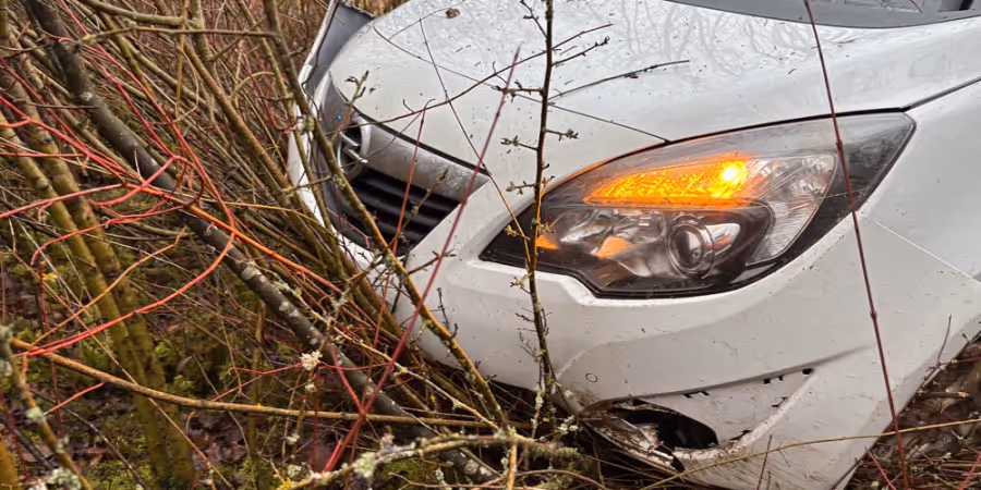 Der Unfall ereignete sich am Samstag, kurz vor 8 Uhr. Ein Automobilist meldete, dass in der Ausfahrt Frick ein Fahrzeug im Gebüsch stehen würde.