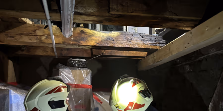 Die sofort aufgebotene Feuerwehr konnte den durch Bauarbeiten ausgelösten Mottbrand an einem Dachbalken rasch unter Kontrolle bringen. Verletzt wurde niemand.