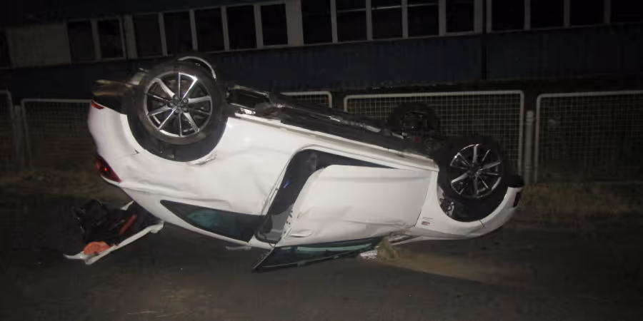 Bei der Kollision überschlug sich der Personenwagen, welcher auf der Schäniserstrasse fuhr und kam auf dem Fahrzeugdach liegend zum Stillstand. An beiden Fahrzeuge entstand erheblicher Sachschaden.