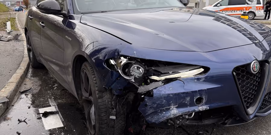 Die Fahrzeuginsassen blieben unverletzt. Der Sachschaden am Personenwagen und der Strasseninfrastruktur wird auf mehrere Tausend Franken geschätzt. Der Führerausweis des Autofahrers wurde am Unfallort eingezogen.