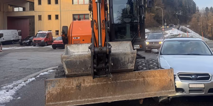 Am Mittwoch kam es in Hundwil AR zu einer Kollision zwischen einem Radbagger und einem Auto. Verletzt wurde niemand, es entstand allerdings Sachschaden.