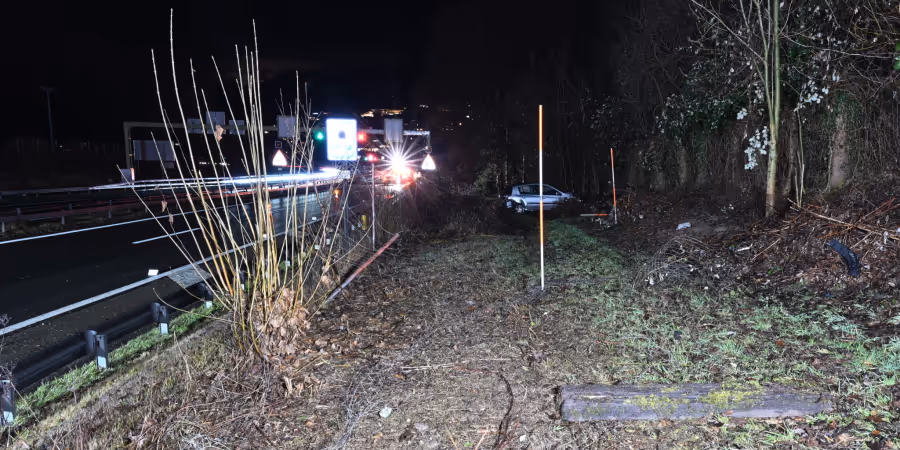 Das Fahrzeug des mutmasslichen Unfallverursachers geriet rechtsseitig die Böschung hoch, durchschlug den Wildschutzzaun und prallte an einen Baum.