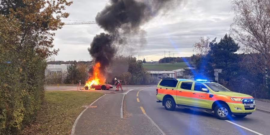 Lindau ZH: Sportwagen geht in Flammen auf – Strasse gesperrt