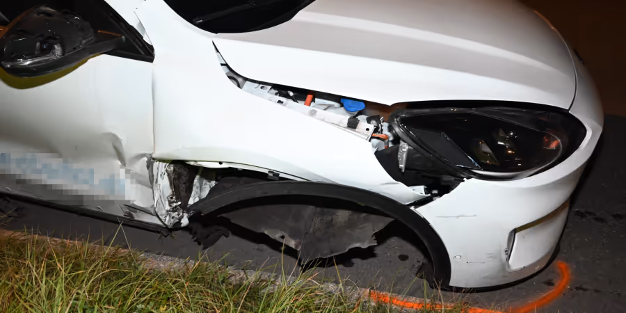 Beim Zusammenprall wurden der Kotflügel beschädigt und das rechte Vorderrad herausgerissen. Nach dem Unfall fuhr die Frau mit dem Auto noch einige Meter weiter, bevor sie anhielt.
