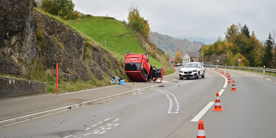 Am Freitag kam eine Autofahrerin (80) auf der H16 in Ebnat-Kappel SG auf die Gegenfahrbahn, prallte in zwei Autos und überschlug sich. Sie wurde verletzt.