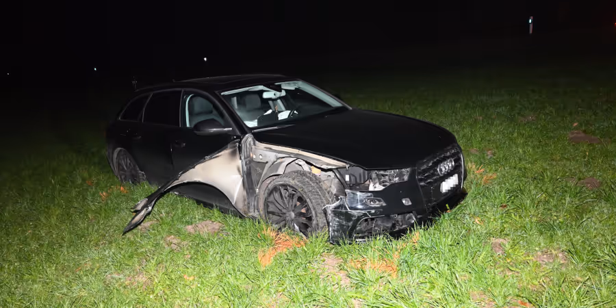 Danach geriet das Auto in das angrenzende Wiesland und prallte mit der rechten Fahrzeugseite gegen einen Baum, wo es schliesslich zum Stillstand kam.