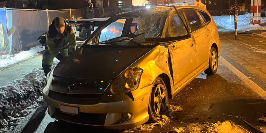 Niederwangen BE: Auto kippt auf Seite und rutscht 100 Meter