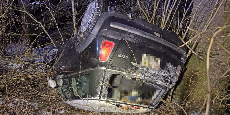 In der Folge überschlug sich das Auto am angrenzenden Waldrand und kam auf dem Dach liegend zum Stillstand. Der 47-jährige Autofahrer wurde leicht verletzt.