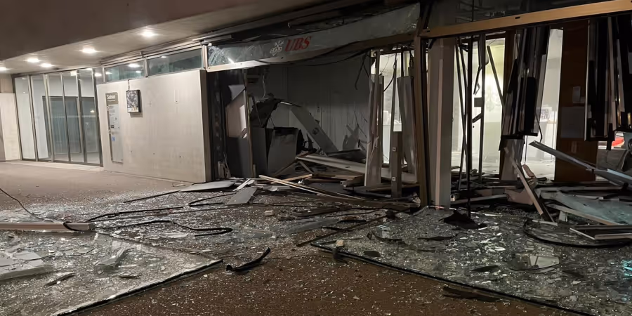 Die sofort ausgerückten Patrouillen stellten fest, dass eine unbekannte Täterschaft an der Naustrasse einen Bankomaten gesprengt hatte. Das Tatobjekt befand sich in einem Vorraum der ansässigen Bankfiliale.