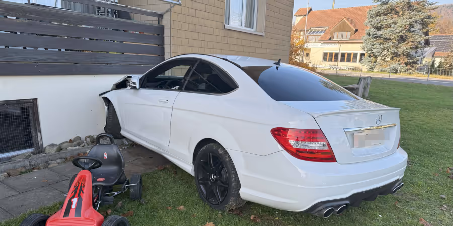 Dieser geriet auf die Gegenfahrbahn, kam von der Strasse ab, überquerte das Trottoir und durchbrach den Zaun einer angrenzenden Liegenschaft. Danach fuhr der Wagen über den Rasen und prallte schliesslich gegen die Wand des angrenzenden Mehrfamilienhauses.
