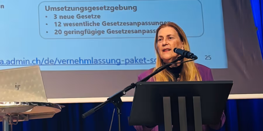 Budliger Artieda präsentierte die zentralen Elemente des neuen Pakets zur Stabilisierung und Weiterentwicklung der Beziehungen zwischen der Schweiz und der EU. Ziel ist die langfristige Sicherung der wirtschaftlichen Beziehung und die Schaffung stabiler Rahmenbedingungen für den Standort Schweiz.