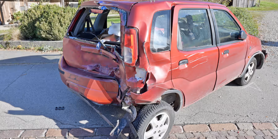 Der nachfolgende Lieferwagenlenker bemerkte das stehende Auto zu spät und prallte mit der Front seines Fahrzeugs gegen dessen Heck. Durch die Kollision wurde das Auto nach links weggestossen und kam neben der Strasse zum Stillstand.