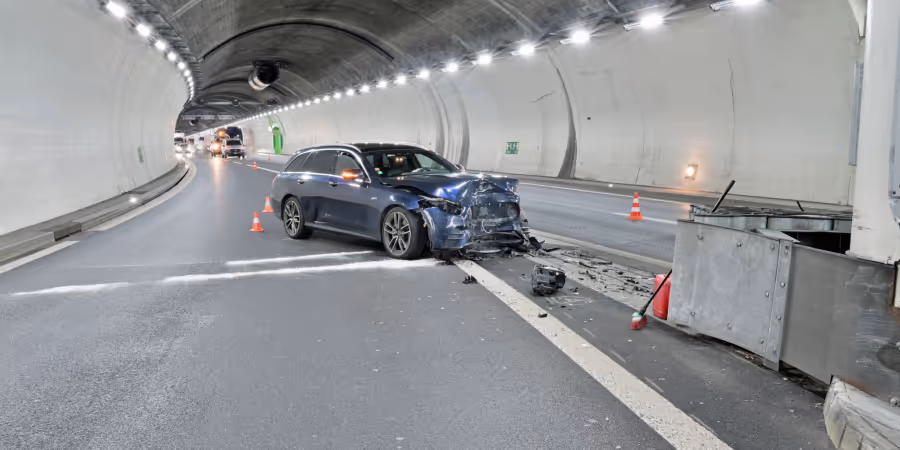 Heute Morgen ist ein Autofahrer im Reussporttunnel frontal in den Anpralldämpfer bei der Ausfahrt Luzern-Zentrum gefahren. Verletzt wurde niemand.