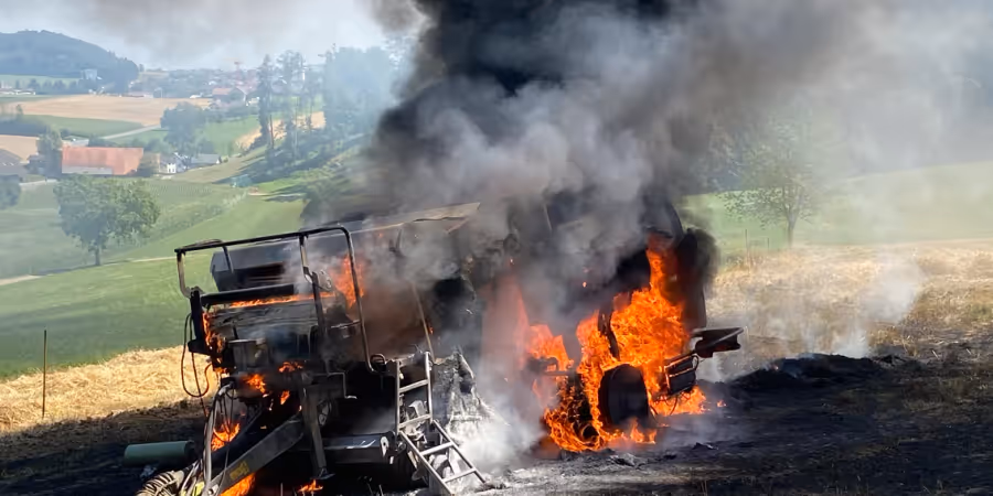 Am Freitagnachmittag brannte in Rickenbach LU eine Rundballenpresse. Die Maschine erlitt einen Totalschaden. Verletzt wurde niemand.
