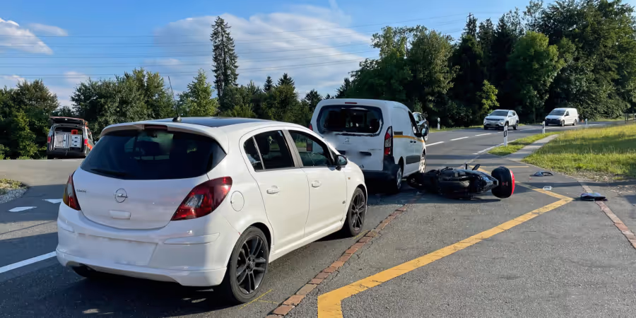 Am Mittwoch ereignete sich auf der Kantonsstrasse in Römerswil LU ein Auffahrunfall. Beteiligt waren ein Lieferwagen, ein Motorrad und ein Personenwagen.