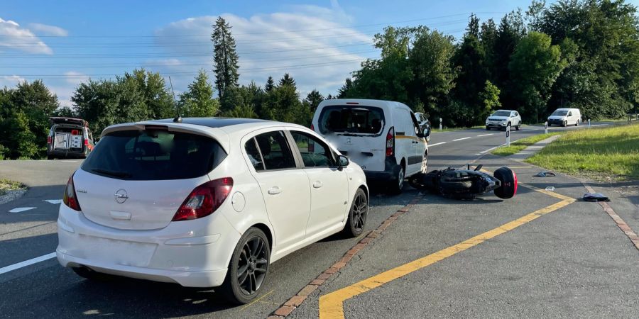 Dieses wurde durch den Anprall gegen das Heck des Lieferwagens geschoben. Die Motorradfahrerin verletzte sich beim Unfall und wurde durch den Rettungsdienst 144 ins Spital gefahren. An den Fahrzeugen entstand ein Sachschaden von ca. 8'500 Franken.