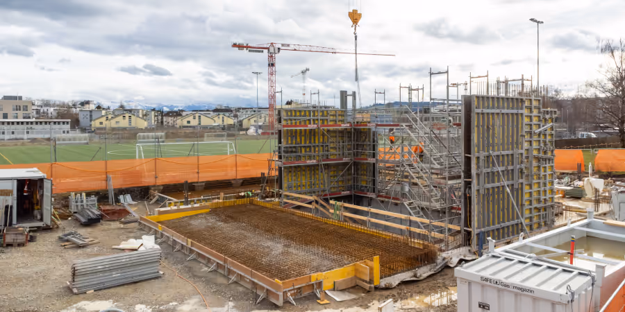 Der Wärmverbund Sursee realisiert derzeit die Wärmezentrale St. Martinsgrund für die künftige Versorgung mit erneuerbarer Wärme im Surseer Gebiet. Nun wird der Baufortschritt der Wärmezentrale sichtbar: Das Fundament ist erstellt, nun ist auch die Bodenplatte fertiggestellt.