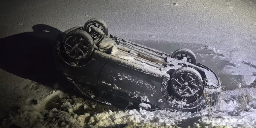 Es kam von der Strasse ab, überrollte sich an der absteigenden Böschung und kam auf dem Dach liegend am Rande des Lagh Pian Doss zum Stillstand. Der Lenker, seine Mitfahrerin und ein mitgeführter Hund konnten das Auto selbständig verlassen.