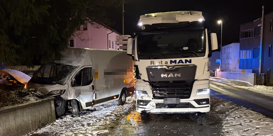 Beim Unfall wurde der Lieferwagenfahrer leicht verletzt und musste durch den Rettungsdienst ins Spital gebracht werden. Der 58-jährige Lastwagenchauffeur blieb unverletzt. Es entstand Sachschaden von mehreren zehntausend Franken.