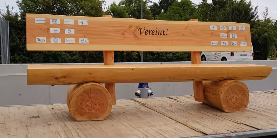 Auf eingravierten Metallplaketten wurden anschliessend die Namen aller beteiligter Vereine am Bänkli angebracht. Die schon etwas kniffligere Frage kam aber nun erst noch: Wie übergibt man so ein Geschenk, das doch etwas unhandlich ist, mit dem gebotenen Überraschungseffekt? Zu diesem Zweck wurde der «Maulwurf» David engagiert. Mit einer fadenscheinigen Begründung sorgte er dafür, dass die Familie Marbet am Tag der Übergabe hinter dem Restaurant Kreuz auf fiktive Gäste aus dem «Ausland» wartete.