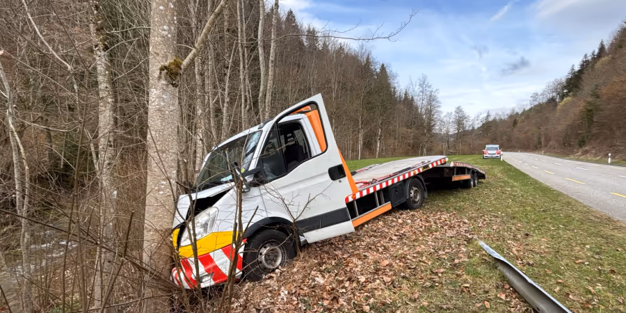 Am Mittwochmorgen kollidierte ein Mann mit einem Lieferwagen und Anhänger in Mümliswil SO frontal in einen Baum. Er wurde dabei leicht verletzt.