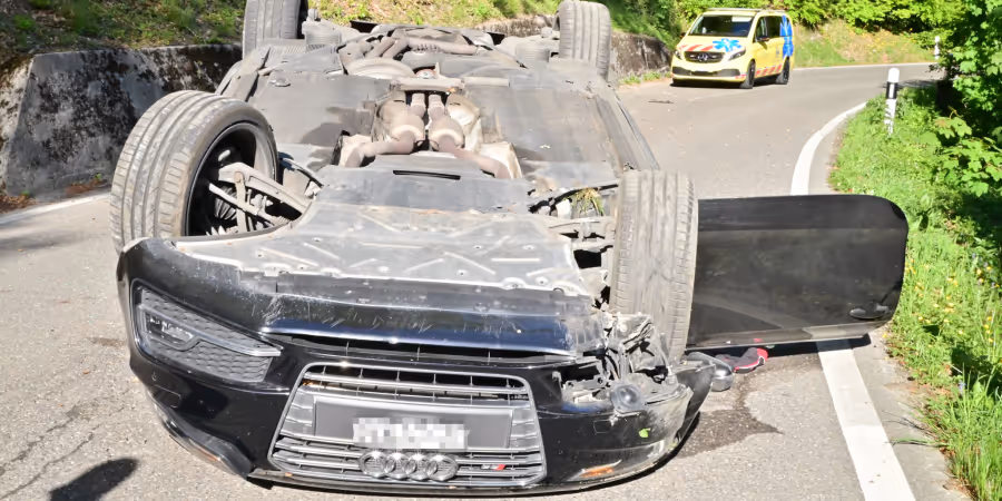 Dieses befuhr eine Böschung, schleuderte über eine Stützmauer, überschlug sich und kam in der Mitte der Fahrbahn auf dem Dach liegend zum Stillstand. Dabei wurde der Autofahrer unbestimmt, sein Mitfahrer eher schwer verletzt.