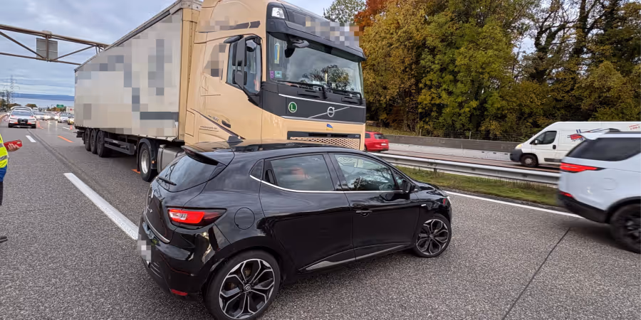 Dabei übersah er das Auto des 21-Jährigen, woraufhin es zur Kollision kam und das Auto vor den Lastwagen geschoben wurde. Die Fahrzeuge kamen anschliessend in der Mitte der beiden Fahrstreifen zum Stillstand.