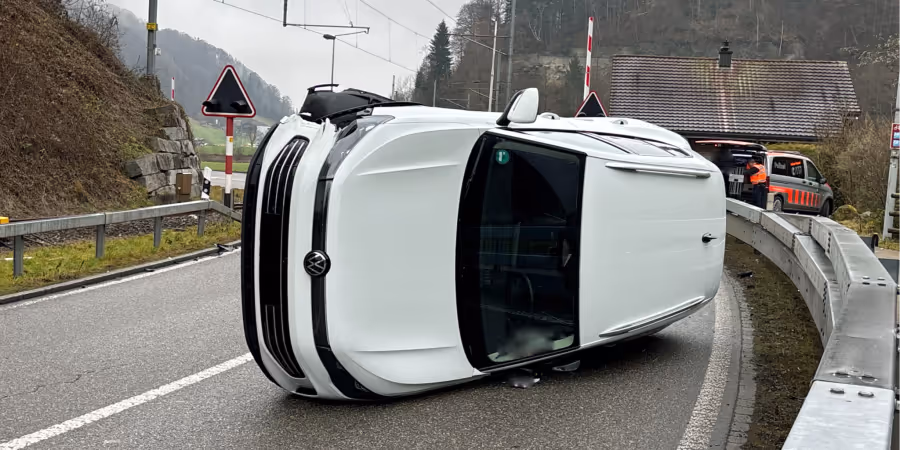 Ruswil LU: Auto kippt bei Unfall auf die Seite