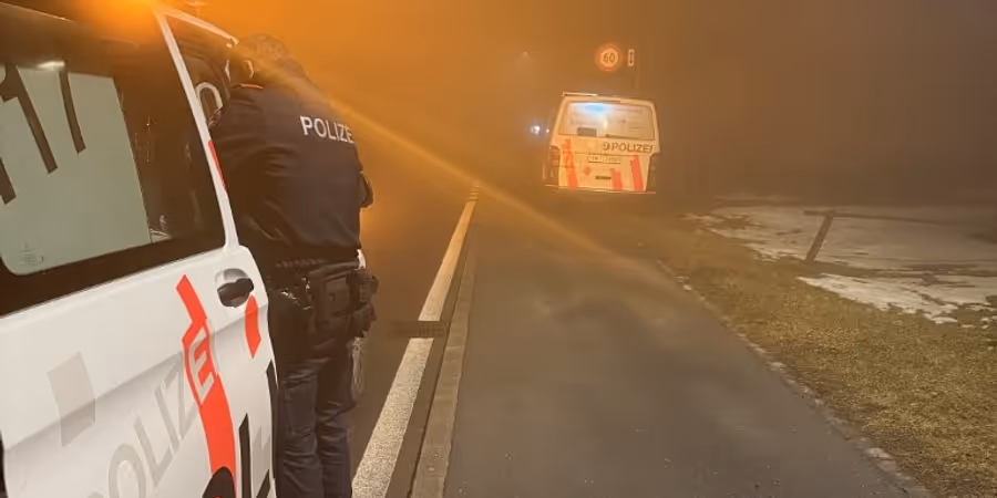 Die Kantonspolizei rückte sofort mit mehreren Patrouillen aus und konnte in der Nähe des Tatorts bereits kurz darauf zwei verdächtige Personen feststellen.