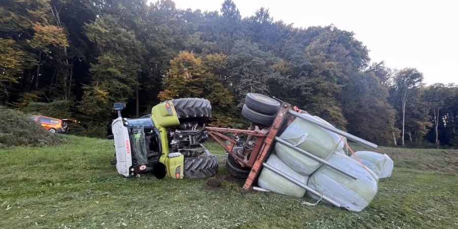 Am Dienstag ist in Beringen SH ein Traktor inklusive Anhänger mit Siloballenladung umgekippt. Personen wurden bei diesem Alleinunfall keine verletzt.