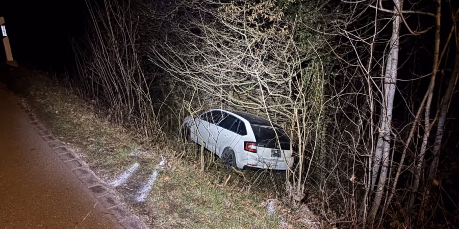 Bei diesem Alleinunfall wurde niemand verletzt. Am Auto entstand Sachschaden in Höhe von mehreren tausend Schweizer Franken.