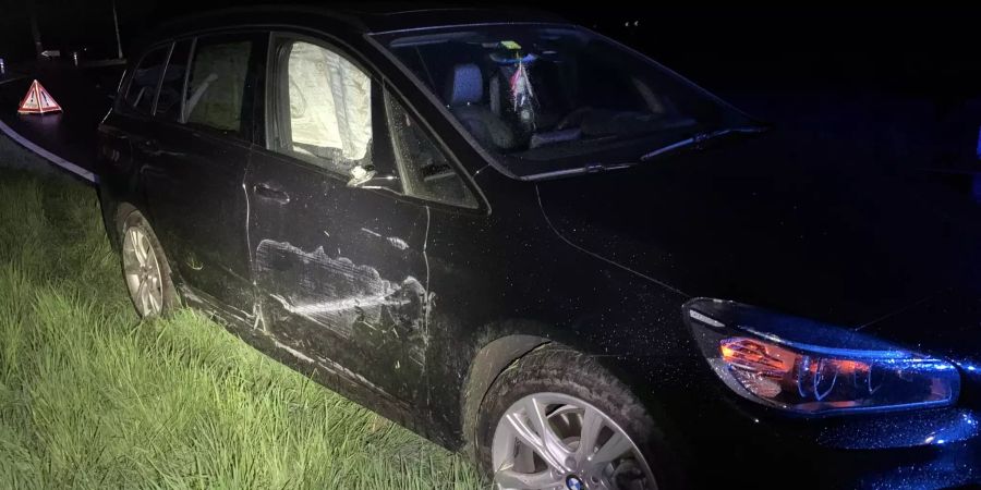 In der Folge kam der Personenwagen rechtsseitig von der Strasse ab, wo er seitlich mit einem Verkehrsschild kollidierte. Der Fahrzeuglenker blieb unverletzt und konnte sein Fahrzeug am Strassenrand abstellen.