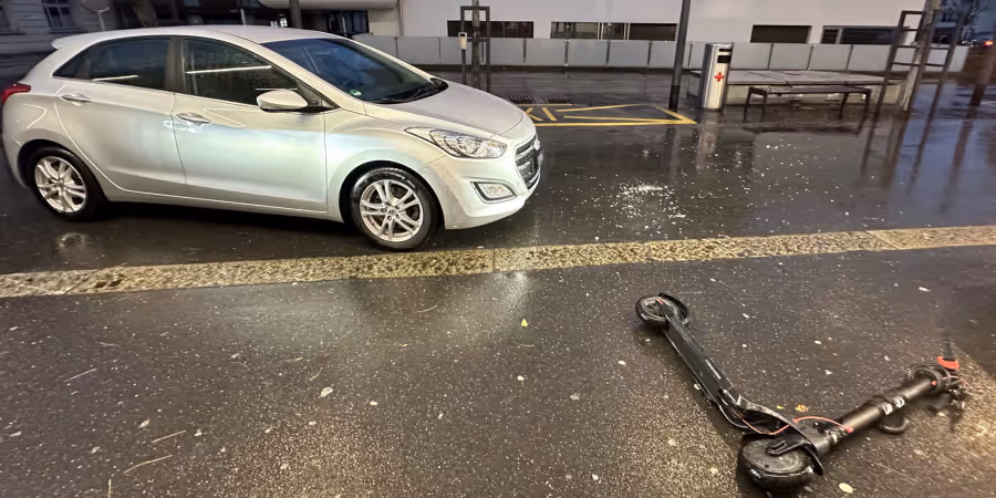 Am Montagmorgen, kam es auf dem Bahnhofplatz in Lachen SZ um 6.40 Uhr zu einem Verkehrsunfall zwischen einem Auto und einem E-Scooter.