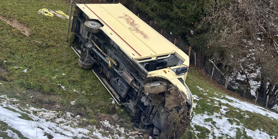 Vorderthal SZ: Lieferwagen rutscht 200 Meter den Abhang hinunter